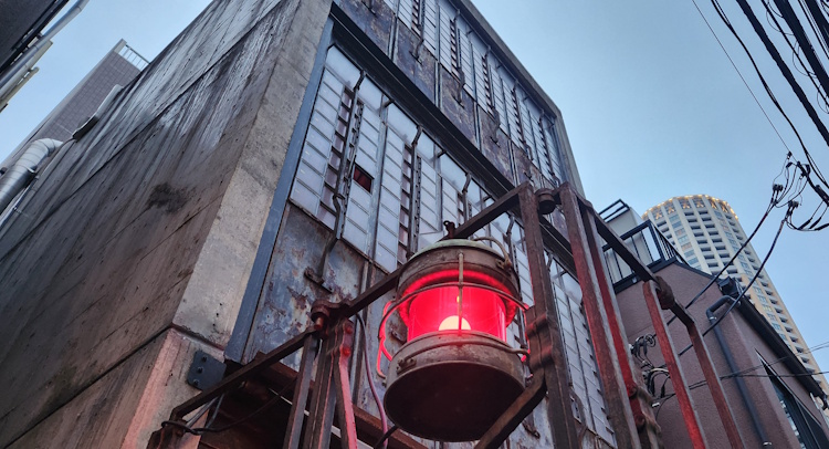 The structure that houses Seirinkan is tall. Practically speaking, it seems unlikely that the building was built with the business in mind. I would not actually call Seirinkan “steampunk” (an aesthetic that is usually much more ornately layered with detail). The exterior is concrete and metal, each stained and weathered, like a slight stylized storehouse on a wharf.